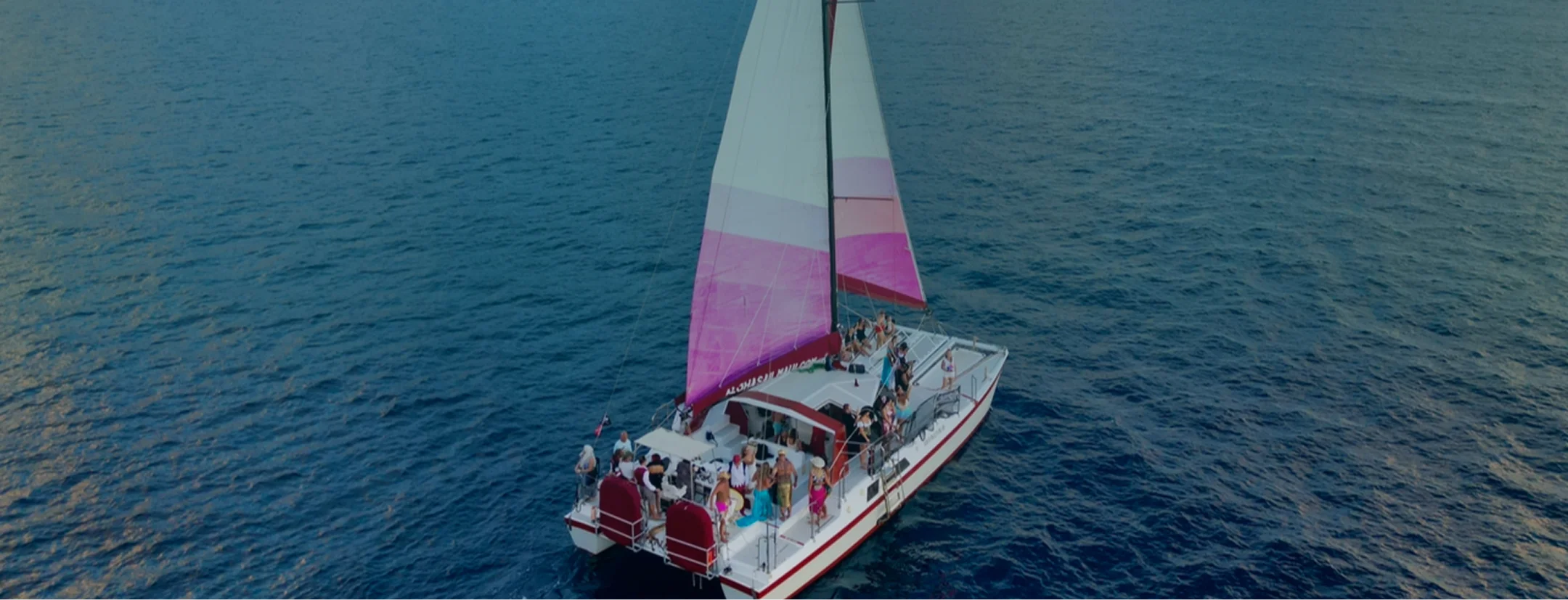 At Sail Winona, we’re more than just a boat — we’re a piece of Hawaii’s rich seafaring history. Hand-built and lovingly maintained by locals, our classic catamaran offers a one-of-a-kind way to connect with the magic of Maui from the water.